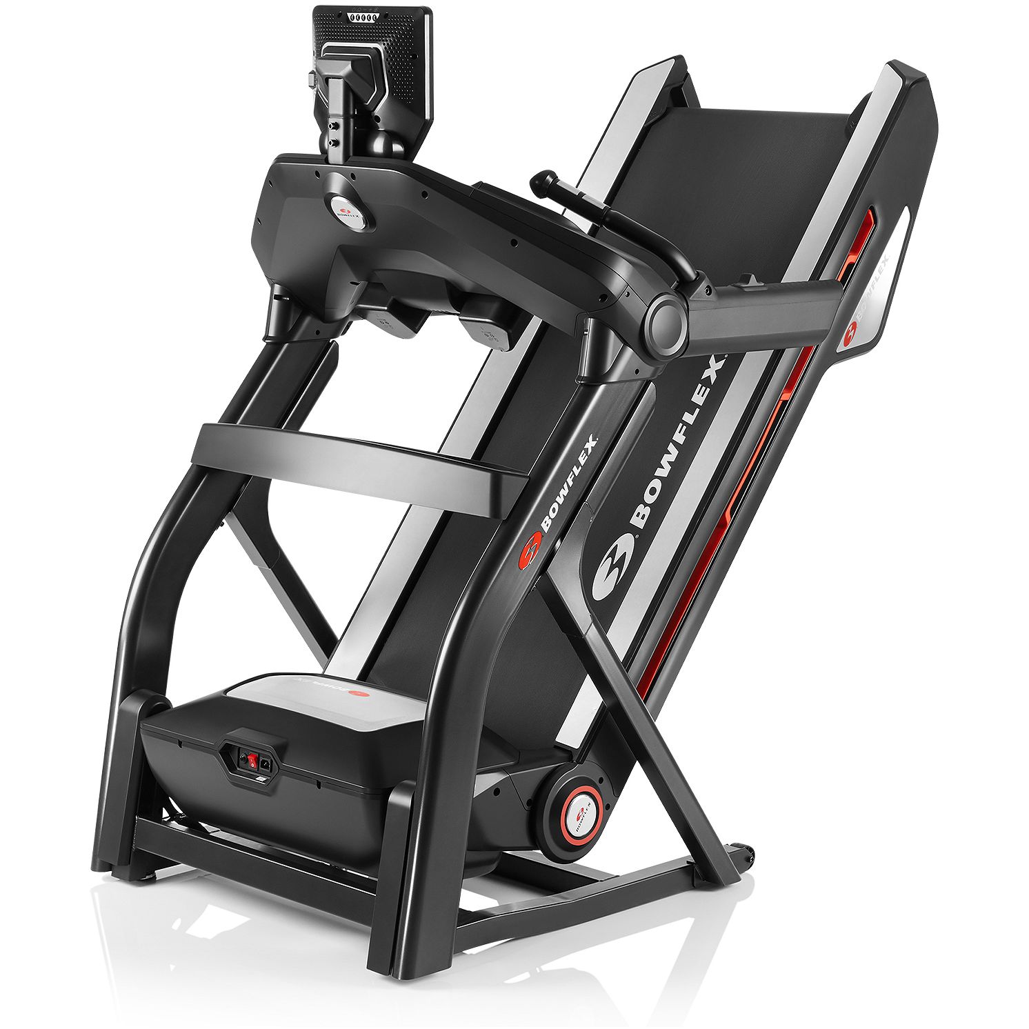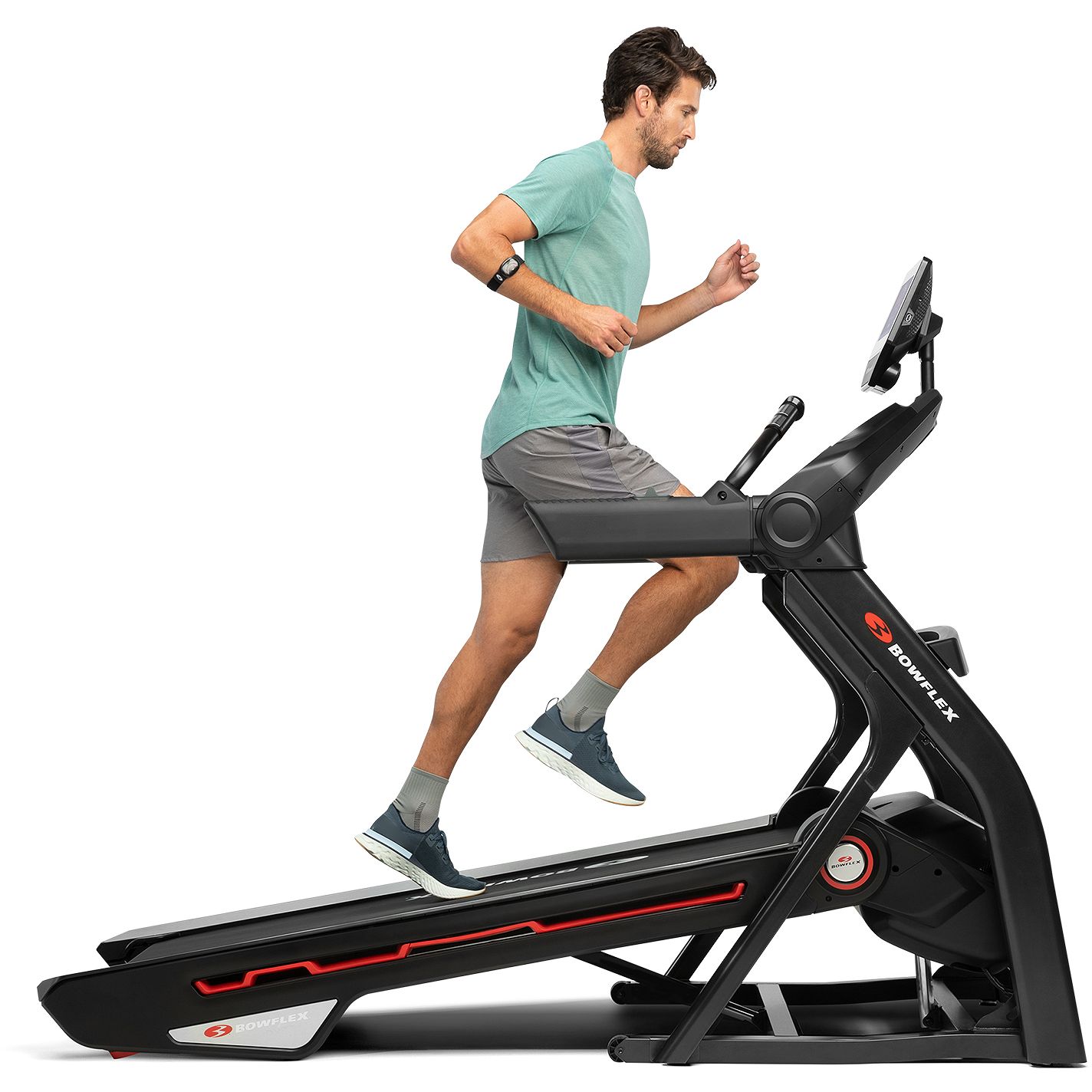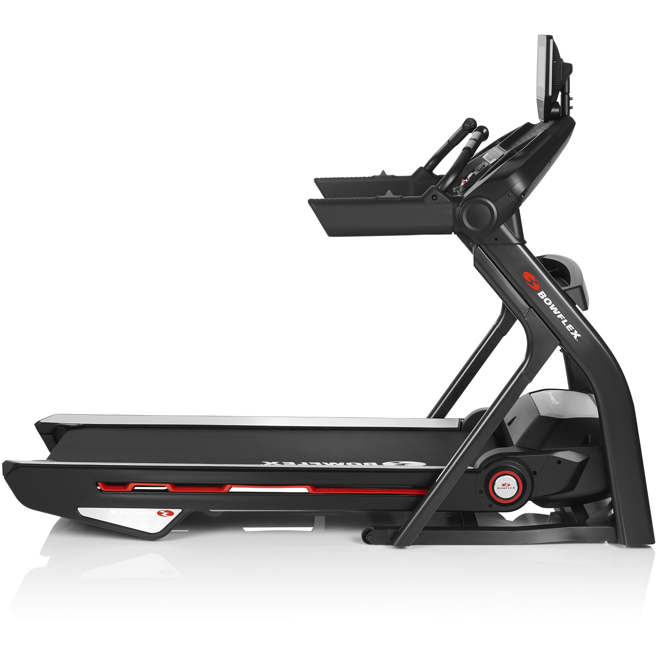 The Bowflex Treadmill-25 features a 10-inch interactive console, Comfort Tech™ deck cushioning, SoftDrop™ folding system, and Bluetooth® enabled for smart devices and heart rate monitors (Heart rate armband included).